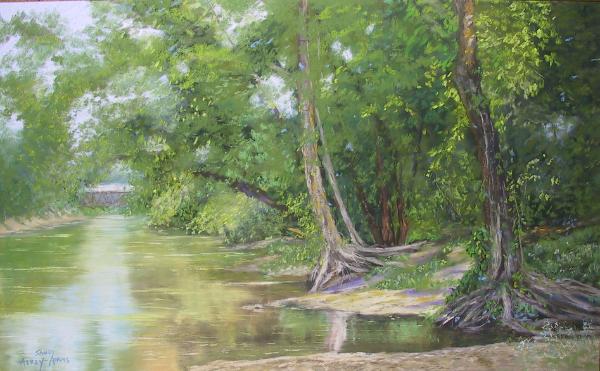 Trees and Covered Bridge- Tyler Park 12.3/4 x 20 3/4 Pastel on Wallis paper $1,800.00
